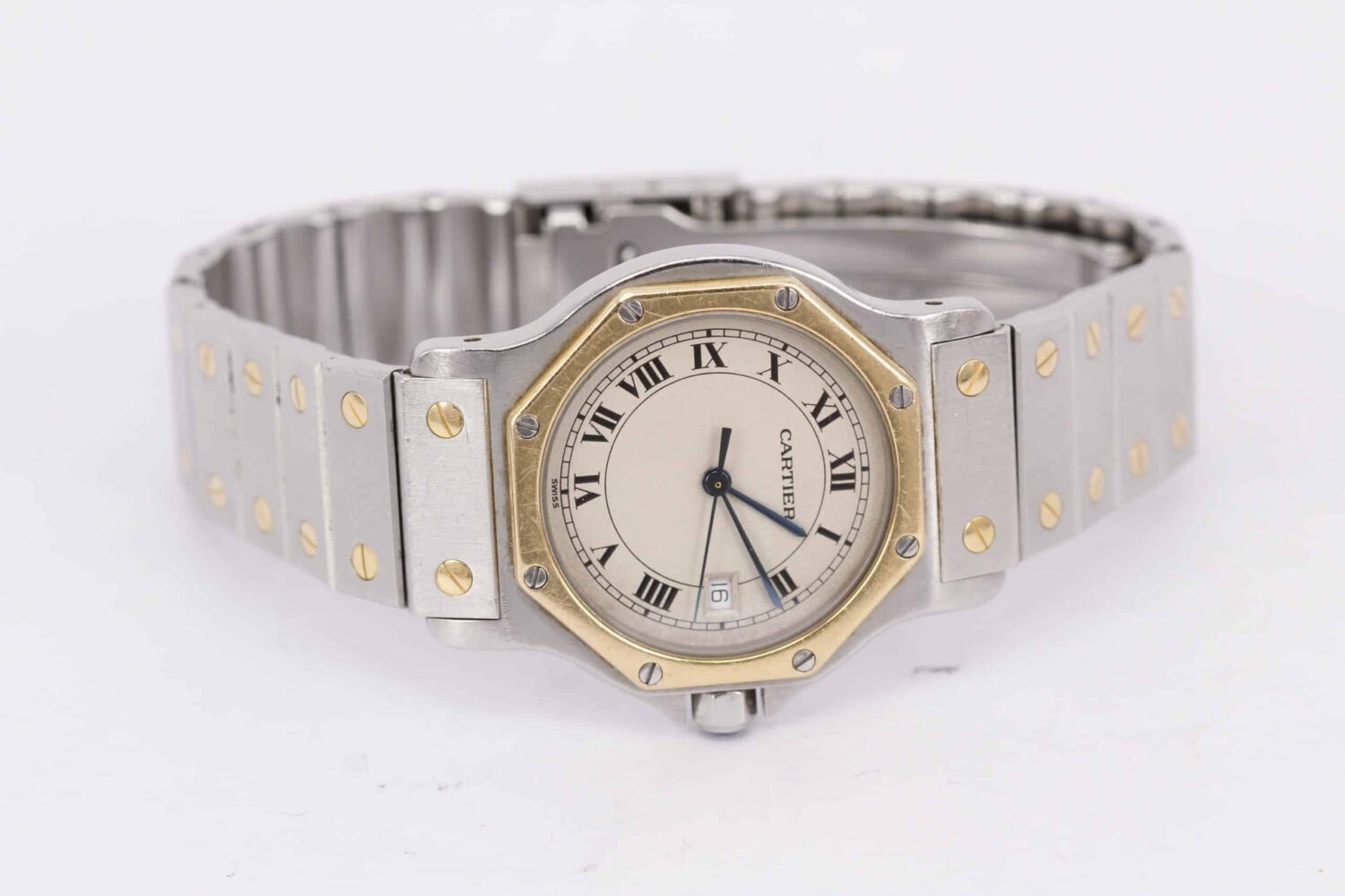 Til salg er et smukt og klassisk Cartier Octagon ref. 2966 fra 1989 – en model, der kombinerer Cartiers tidløse elegance med et markant design og den eftertragtede blanding af guld og stål.