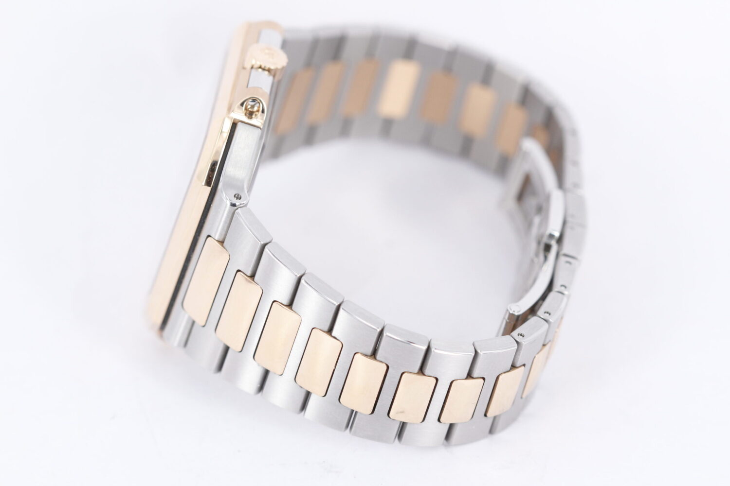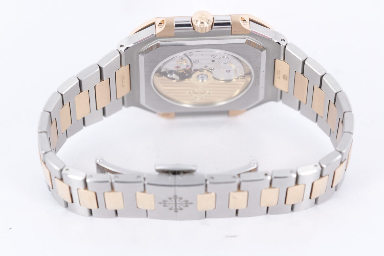 Cubitus-kollektionen repræsenterer et nyt kapitel hos Patek Philippe, hvor det klassiske håndværk forenes med et mere markant og arkitektonisk formsprog. Reference 5821/1AR kombinerer børstet stål med varme detaljer i rosaguld, hvilket skaber en sofistikeret kontrast og et eksklusivt, men stadig sporty udtryk. Den integrerede lænke viderefører husets stærke tradition for komfort og finish, hvor hver led er udført med en imponerende præcision og sans for detaljer.
