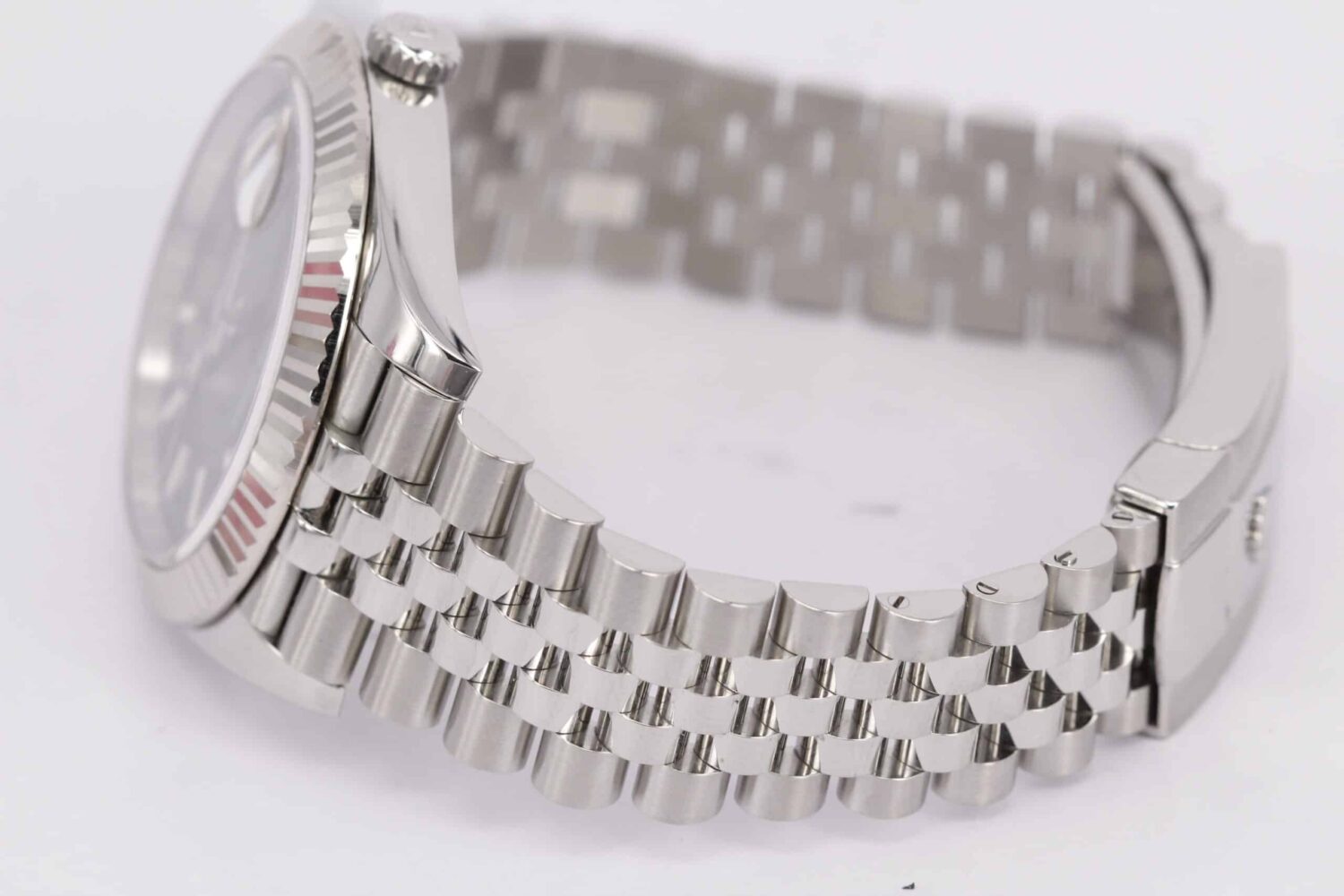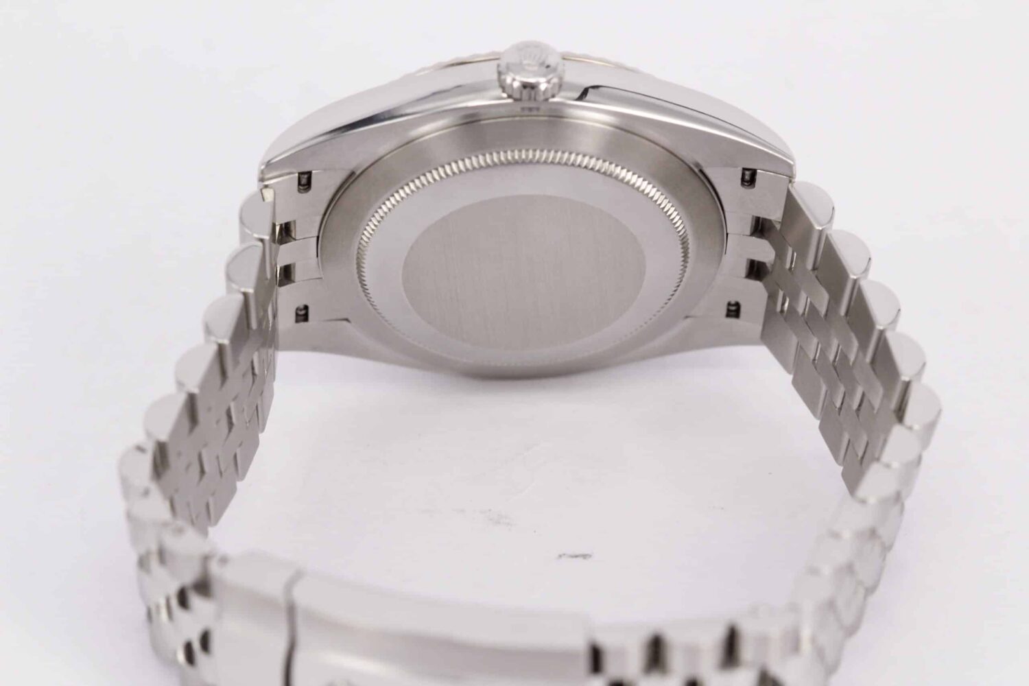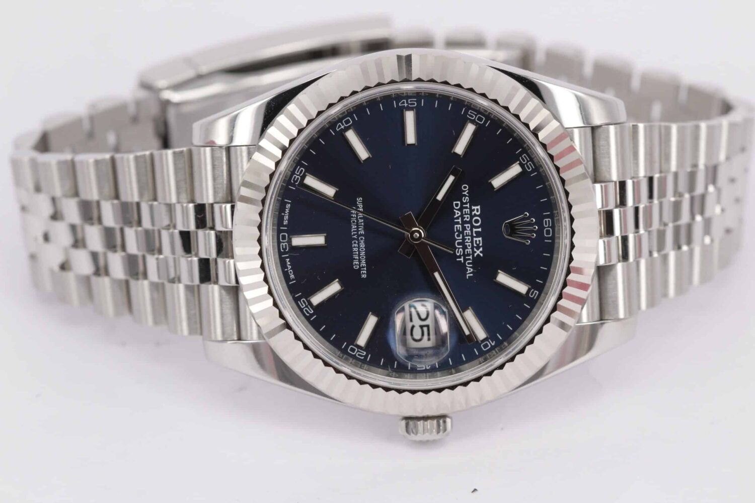 Dette Rolex Datejust ref 126334 med blå skive fra 2018 kombinerer elegant design med teknisk præcision. Med sin karakteristiske rillede krans i 18 kt hvidguld og sin robuste stålurkasse fremstår uret både luksuriøst og alsidigt – velegnet til både hverdag og formelle anledninger.