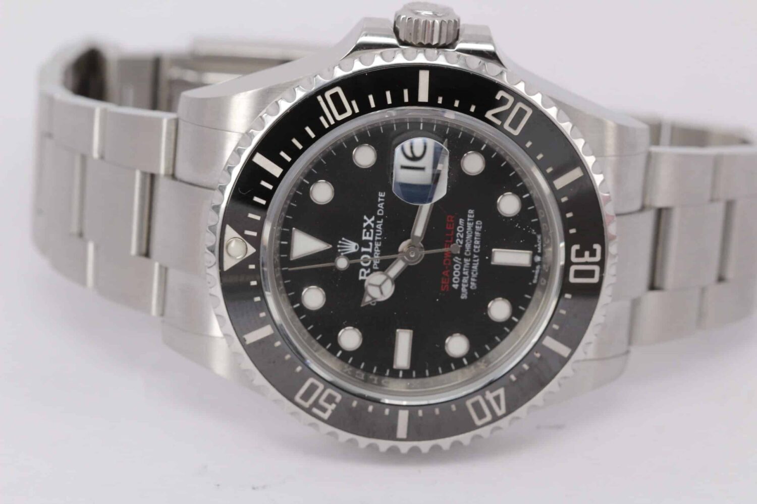 Flot eksemplar af den opgraderede Sea-Dweller på 43mm, med alle de tekniske forbedringer man kunne ønske sig fra Rolex såsom 904L stål, Glidelock til mikrojusteringer af lænken, det nyere COSC certificerede Cal. 3235 værk og ikke mindst den røde Sea-Dweller tekst som på de tidligere reference 1665.