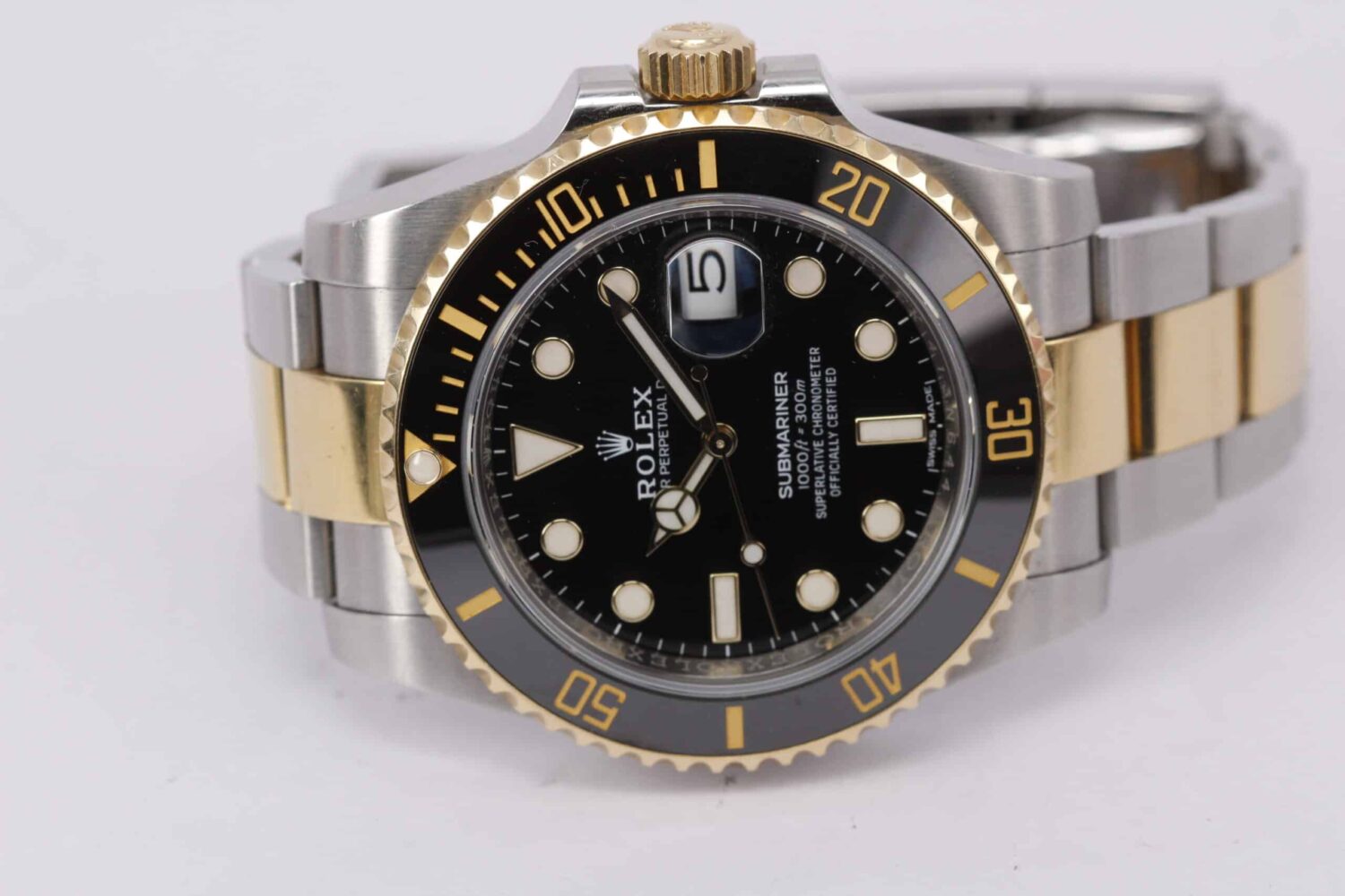Rolex – Submariner Date 116613LN fra 2017, i den elegante to-tone udgave med stål og 18k gult guld, sort keramisk bezel og sort skive.